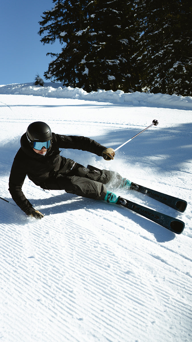 Ein sportlicher All-Mountain-Ski, perfekt für kraftvolle Schwünge auf der Piste und kurze Abstecher ins Gelände.